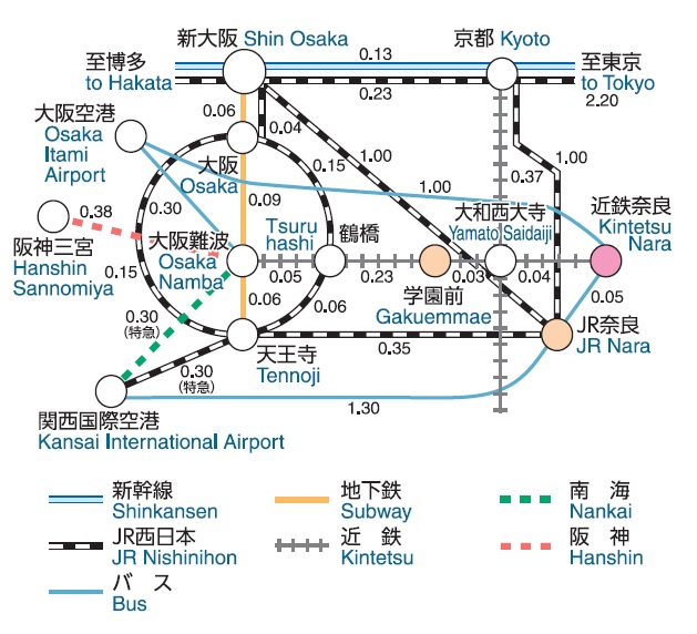 JR奈良駅下車。市内循環バスに乗車、近鉄奈良駅にて下車(所要時間 約5分)。徒歩約5分。