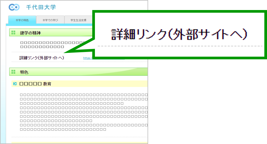また、各大学のサイトでは探しづらい情報も、大学ポートレートのリンクから見に行くことができます。