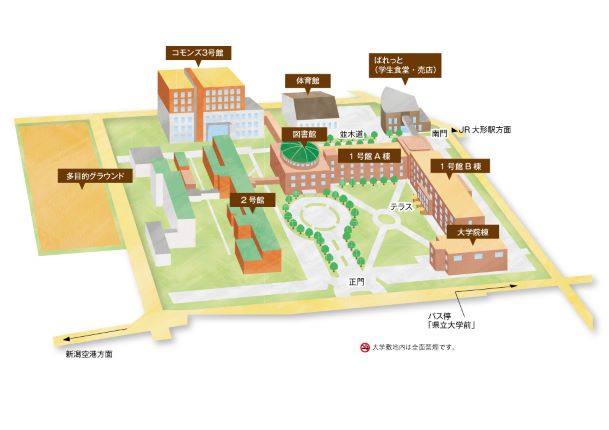 新潟駅バスターミナル2番のりばから[大形線]に乗車(所要時間約25分)~「県立大学前」バス停下車・徒歩3分